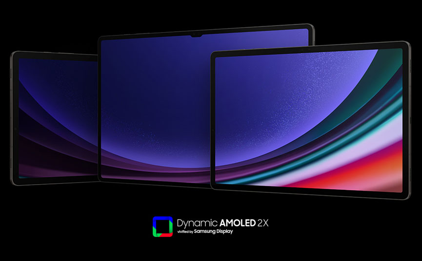 رؤية مبتكرة بانتظارك، سواء اخترت جهاز Galaxy Tab S9+, Galaxy Tab S9، أو Galaxy Tab S9 Ultra. تتميز جميع هذه االأجهزة اللوحية بشاشة Dynamic AMOLED 2X ذات الألوان رائعة والصور مميزة. بالإضافة إلى ذلك، فهي تهتم لصحة عينينك مع تقنية تخفيف الأشعة الزرقاء.