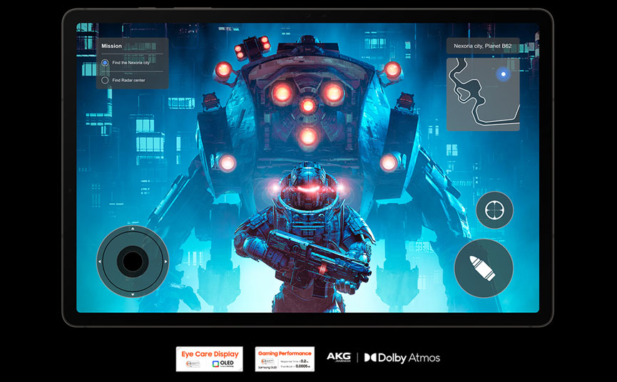 تمنحك أجهزة Galaxy Tab S9 تجربة ألعاب فيديو استثنائية، مع صور نابضة تحاكي الواقع، وشاشة مبتكرة لتغيّر قواعد اللعبة. ومع مكبر الصوت quad AKG، ونظام الصوت المحيط Dolby Atmos، ستستمع بمؤثرات صوتية تغمر حواسك.