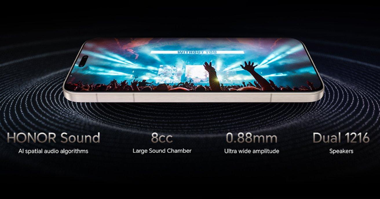 تتميز بتقنية الغرفة المزدوجة المفتوحة الرائدة في الصناعة، مع غرفة صوت كبيرة بسعة 8cc ومدى اهتزاز فائق الاتساع يبلغ 0.88 ملم.*12 تُعزّز خوارزميات HONOR SOUND AI للصوت المكاني بسهولة قوة الجهير وتأثير المجال الصوتي المكاني إلى مستوى جديد كليًا، مما يُنشئ تجربة صوتية أكثر غامرة