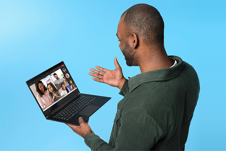 يوصلك نظام Windows 11 على الفور بمن تهتم بأمرهم. باستخدام الدردشة من Microsoft Teams، يمكنك الوصول إلى أي شخص (مجانًا) كيفما تفضل (اتصال، دردشة، كتابة نصية، فيديو) مباشرةً من جهاز سطح المكتب الخاص بك.