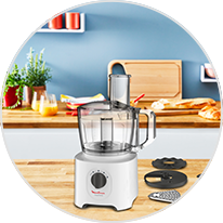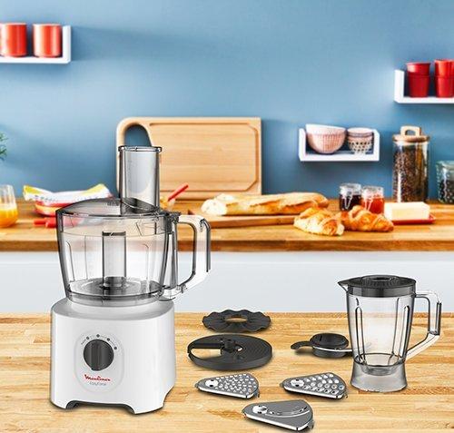 Chopping all kinds of ingredients, coarse or fine grating / slicing, scraping / shredding of vegetables or cheese. Preparing soups, juices, smoothies in the blender attachment. Kneading heavy or light dough. Chopping onions, garlic, herbs, etc. Beating whipped cream to accompany your favorite desserts. Emulsifying condiments such as mayonnaise.