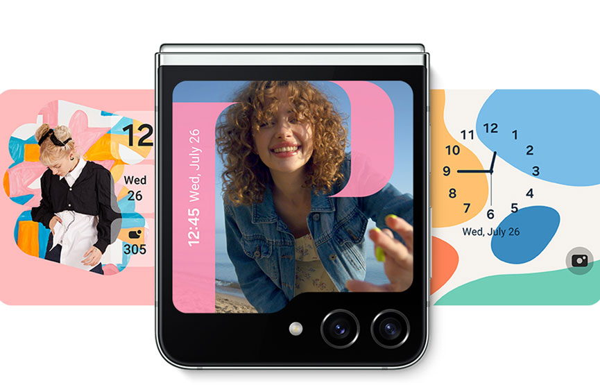 Take total control of the Flex Window. Customize your device with loads of widgets, video wallpapers, clock faces, styles and more to make your Galaxy Z Flip5 uniquely you.