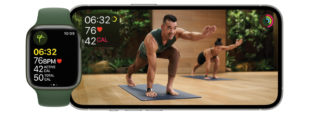 Apple Fitness+ features onscreen metrics from Apple Watch to keep you motivated. Choose from 11 workout types, including HIIT, Pilates, Strength, and Yoga. And video and audio guided Meditation help train your mind.