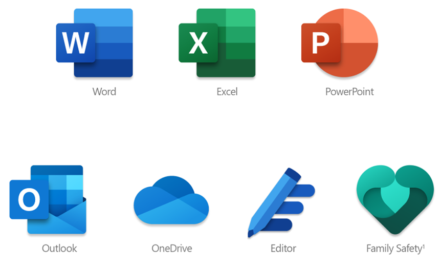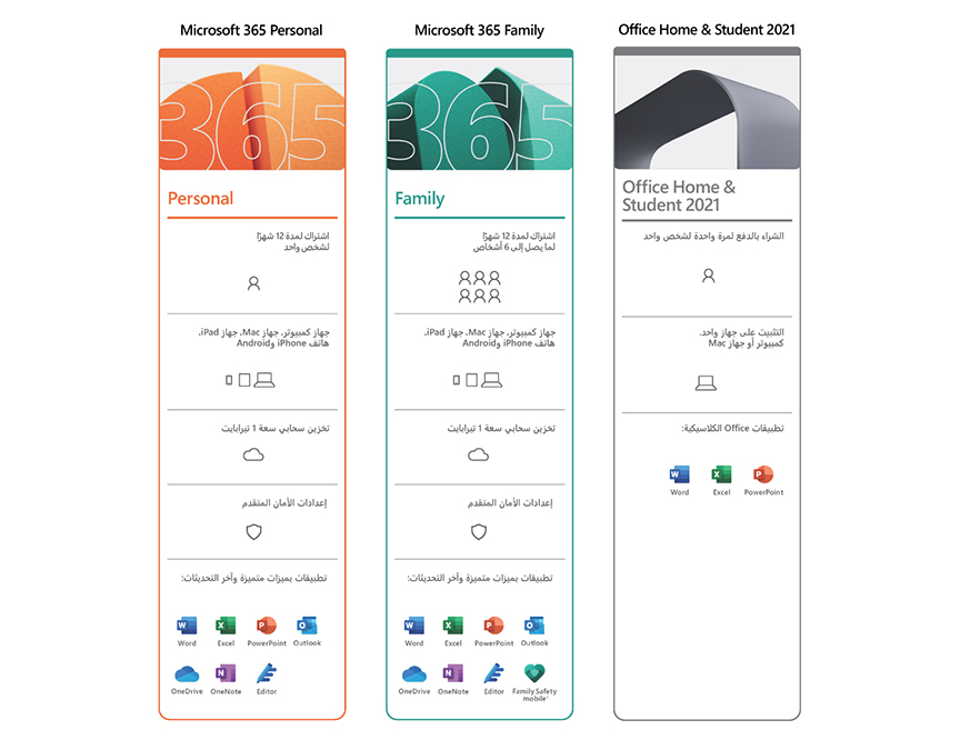يتيح اشتراك Microsoft365 Family ميزات متميزة في التطبيقات والخدمات الموضّحة.