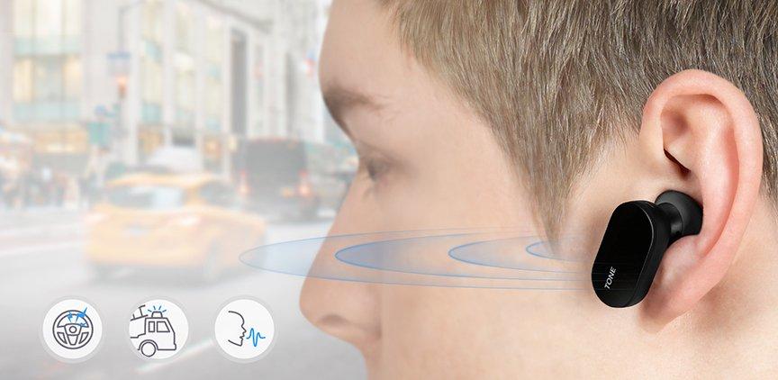 The semi-open earbud design allows you to hear external sounds, so it’s safe to listen to music while you walk, or wherever you are.