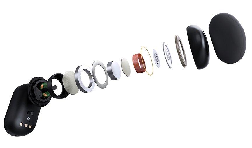 A composite diaphragm in the speaker unit helps produce clarity in high, mid, and low range. The high-strength metal layer creates accurate treble, while the plastic layer produces rich, deep bass. Now you can experience clearer and more balanced sound than ever before.