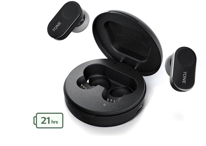 A single charge offers 6 hours of playback, and the cradle provides an extra 15 hours. That’s a total of 21 hours and the end of your battery worries.