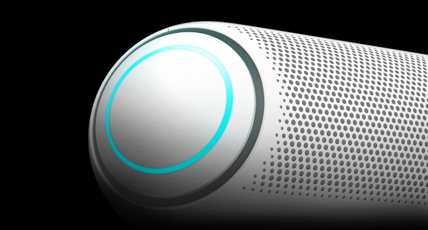 A sleek, rounded design with a rubberized finish is easy to hold and fits comfortably in your hand, while ring-shaped woofer lights add a colorful mood to your space.