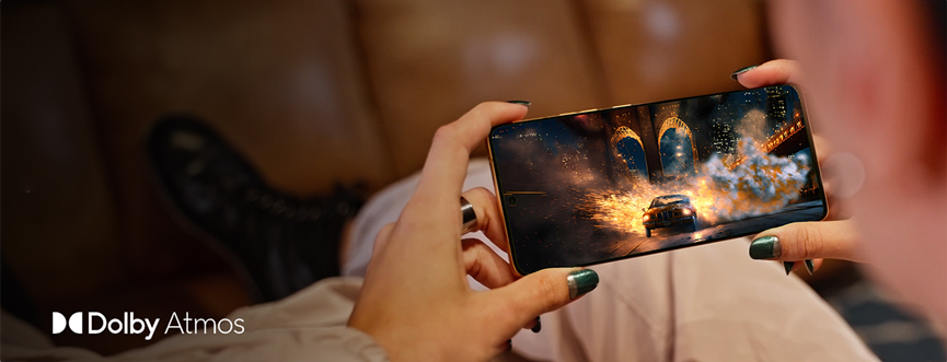 Experience immersive edge-to-edge viewing on a 6.67" pOLED display. Enjoy a clear, vibrant picture thanks to Super HD resolution and watch movies with true-to-life colours and Dolby Atmos immersive sound.