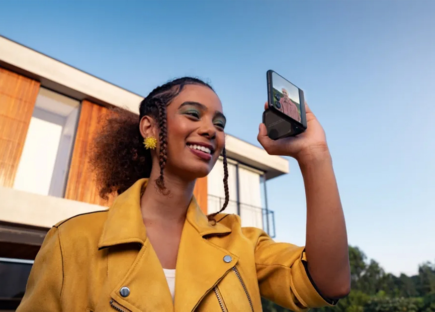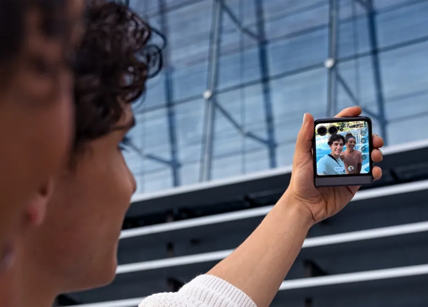 Capture stunning selfies and enjoy high- quality video calls using the rear camera with your phone flipped closed. Become a hands- free creator and capture selfies with Flex View.