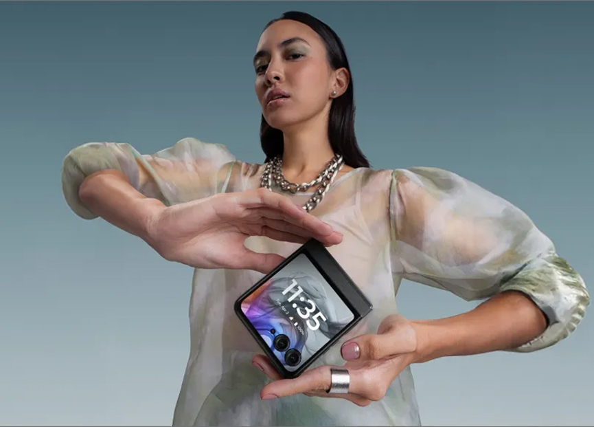 With a single flip, unfold the smooth potential of a 6.9" pOLED display. One of the largest displays of any flip phone, with the 120 Hz refresh rate, makes your entertainment experience bigger, brighter, better. Find yourself discovering new levels of audio depth, clarity, and detail in your favourite music, movies, and more. Plus, Dolby Atmos® features Spatial Audio, an enhanced experience where sound can flow around you in a virtual space.