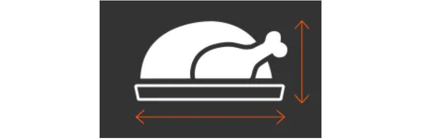 The wide width makes you cook up to 46cm diameter food such as a large pizza.