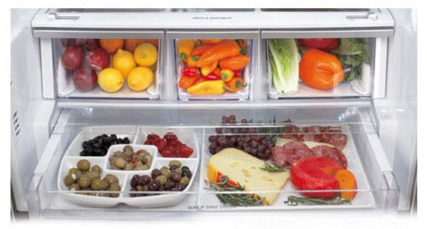 Humidity-controlled crispers help maintain humidity levels, to help extend the life of your fruits and vegetables. This refrigerator also features a full-width Glide N' Serve® pantry drawer, making it easy to find some space for all that food you want to keep fresh.
